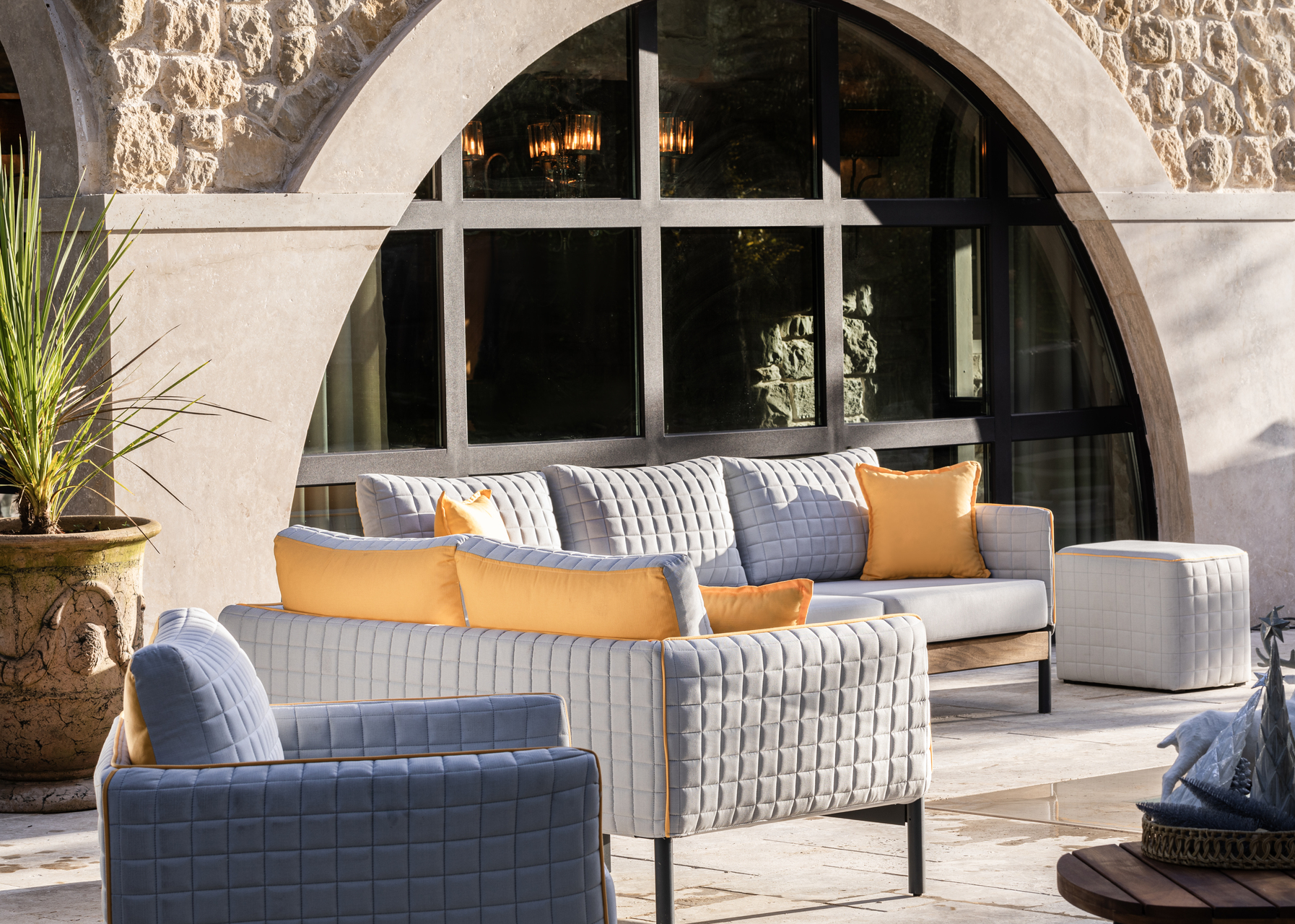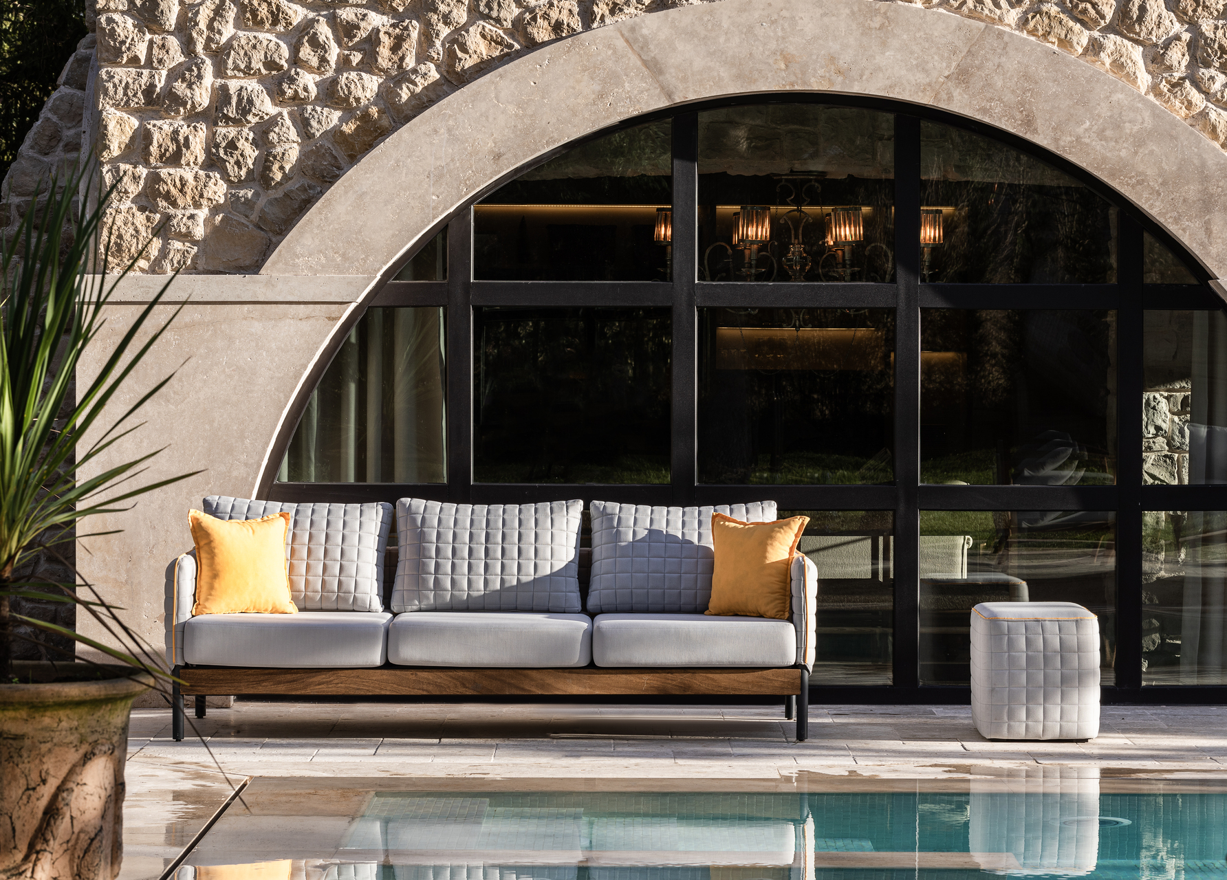 Dyno, iç mekan mobilyalarının zarafetini açık hava yaşamı için gereken dayanıklılıkla kusursuz bir şekilde harmanlıyor. Şık kapitone kumaşı bahçenize bir miktar sofistikelik katarken, alüminyum yapısı tüm hava koşullarına dayanabilmesini sağlar. Dyno, her ikisinin de en iyisini isteyenler için mükemmel bir seçimdir.